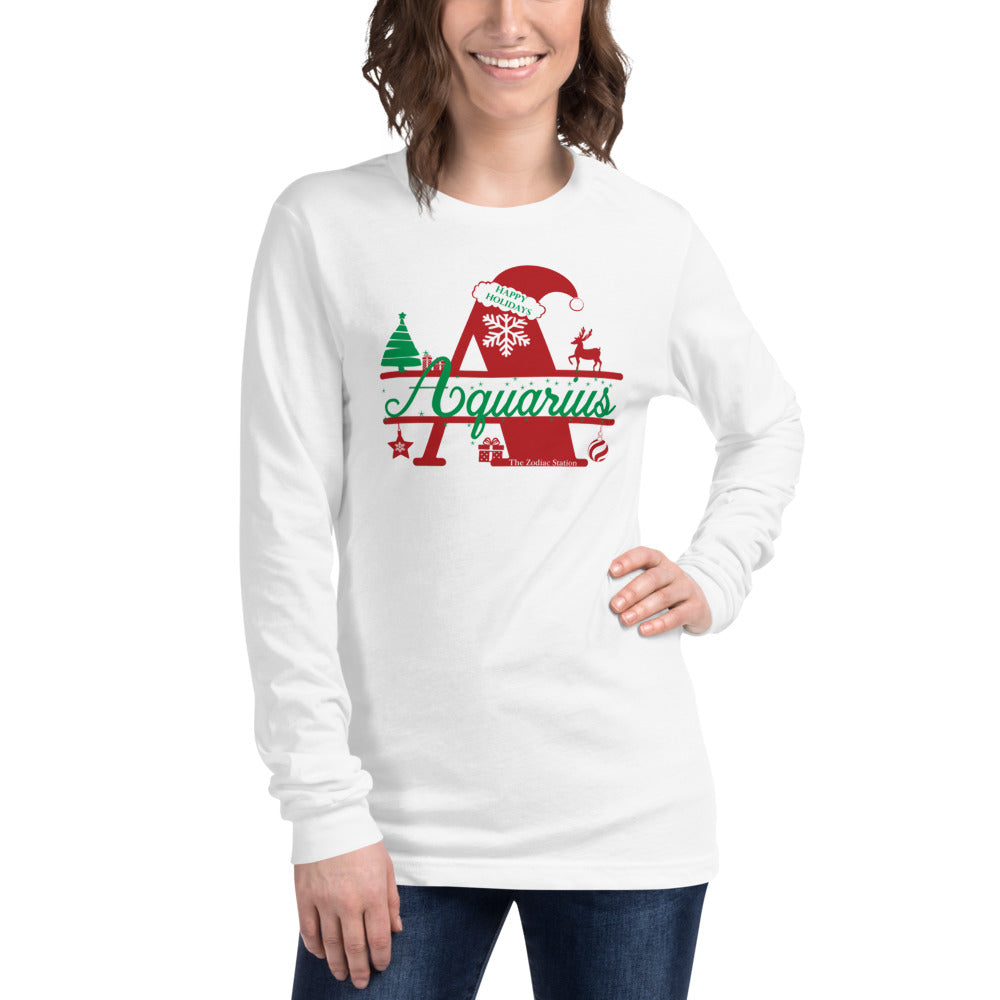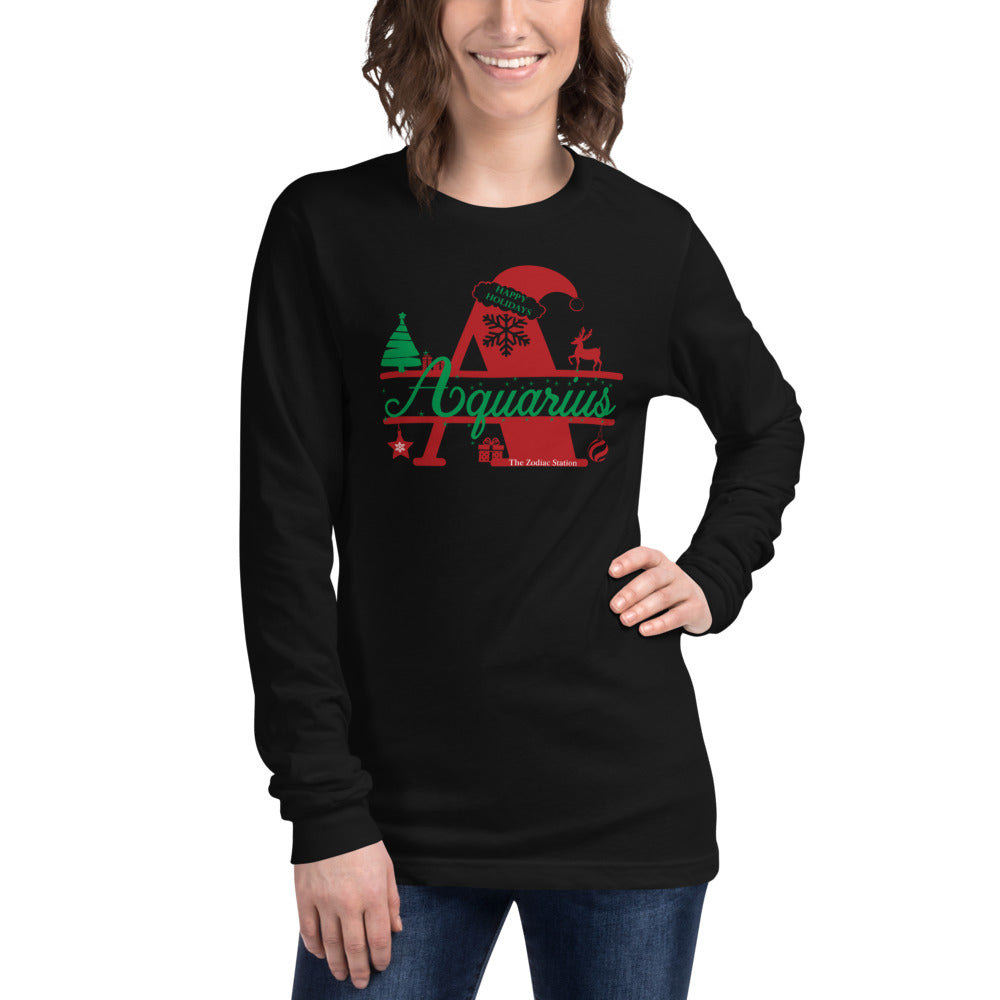 Aquarius Zodiac Christmas Long Sleeve Shirt Letter The Zodiac Station