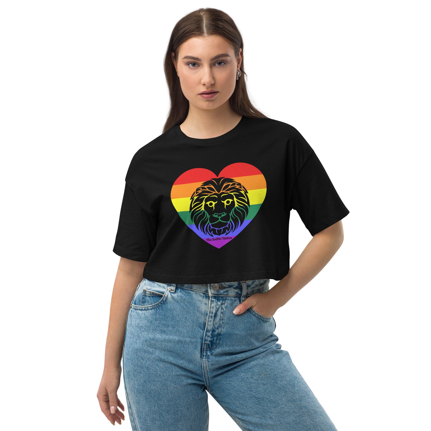 Leo Zodiac Crop Top Loose drop shoulder Rainbow Heart The Zodiac Station
