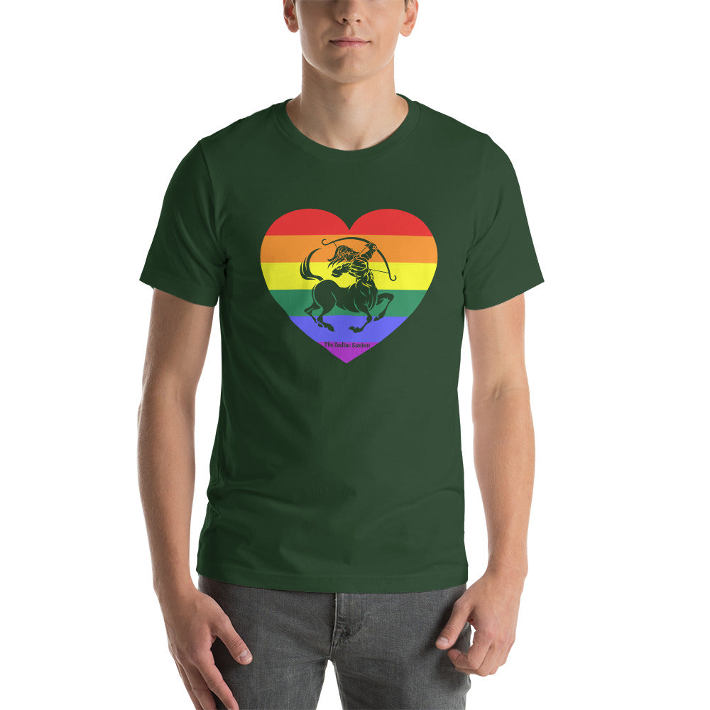 Sagittarius Zodiac T-Shirt Unisex LGBTQ+ Rainbow heart The Zodiac Station