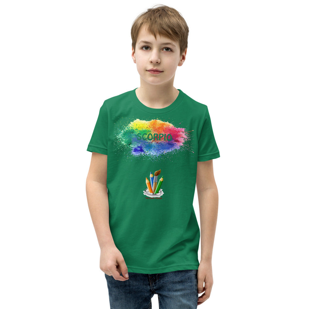 Scorpio Zodiac T-shirt by The Zodiac Station shows off your child's zodiac sign and their fun, creative side. The paint design is a canvas of paint splashes of different colors. This Scorpio Zodiac Youth shirt is light, soft and comes with a unique design that stands out from the crowd. Whether your child is going to school or just outside to play with friends, this Scorpio shirt is bound to become a favorite in their wardrobe. It is a great birthday gift or just because gift. You can thank me later.